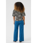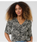 This women's blouse features a relaxed fit with short, wide sleeves and a subtle V-neckline. Designed for comfort, the top is ideal for both casual and smart-casual settings, offering versatile style for various occasions.