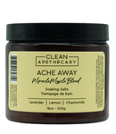 Ache Away Soaking Salts are enriched with high-quality Epsom salts, renowned for their therapeutic properties. Epsom salts are known to help relax muscles, alleviate pain, and reduce inflammation, making them an ideal choice for soothing baths. The calming scents of Chamomile, Lemon, and Lavender work synergistically to help reduce stress, anxiety levels and promote better sleep. Suggest to your customers that incorporating Ache Away into their bedtime routine can contribute to a more restful and rejuvenating night's sleep.