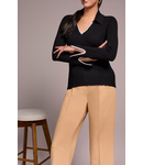Exude sophisticated charm in this refined polo sweater, featuring a sharp Johnny collar that accentuates the v-neckline. The contrast stitching along the collar adds a touch of artisanal craftsmanship. Made from luxurious spun rayon.