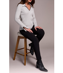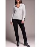 Exude sophisticated charm in this refined polo sweater, featuring a sharp Johnny collar that accentuates the v-neckline. The contrast stitching along the collar adds a touch of artisanal craftsmanship. Made from luxurious spun rayon.