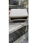Measures 7 1/2" by 4 1/2" by 2 1/4". Detachable inner coin purse is 4 1/4" by 3 1/4" by 1".