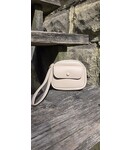 Such a cute small wallet with a wrist strap, a key ring, and inner pocket, and a snap outside pocket. Measures 5" by 4" by 1".