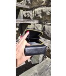 This crossbody purse has 4 card slots inside, and on the back there is a zippered area with 2 sections.