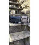 Here is a nice mid-size purse that has a side zip, top zip, inner zip and 5 separated areas to keep all your belongings in their place! Measures 10' by 6" by 5".