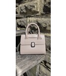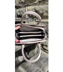 This small handbag has an inside zipper, and a crossbody strap that attaches to the sides.