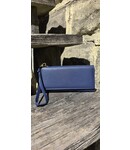 This streamlined and classic wallet/clutch is just the answer with a wrist strap, snap closure, zippered section for change, a billfold, 12 card slots, and a slide in area for receipts.