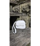 Such a cute small wallet with a wrist strap, a key ring, and inner pocket, and a snap outside pocket. Measures 5" by 4" by 1".