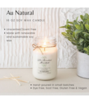1. 100% all natural soy wax. It is renewable and sustainable. Never tested on animals and does not include animal byproducts.